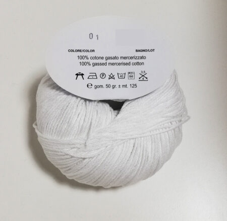 Filato prodotto in Italia in confezionato in gomitoli da 50 gr. di puro cotone 100% gasato e mercerizzato per aumentarne la morbidezza, anti allergico e irrestringibile, in tanti colori.