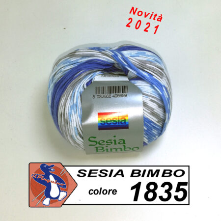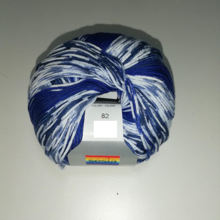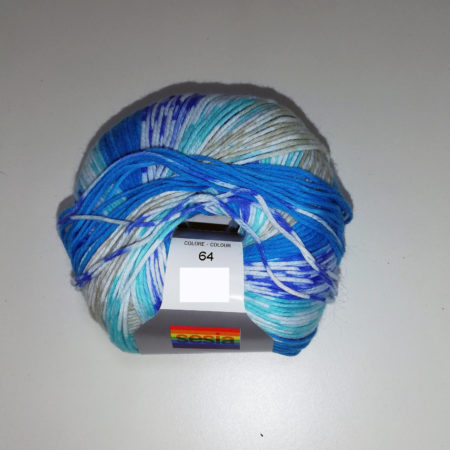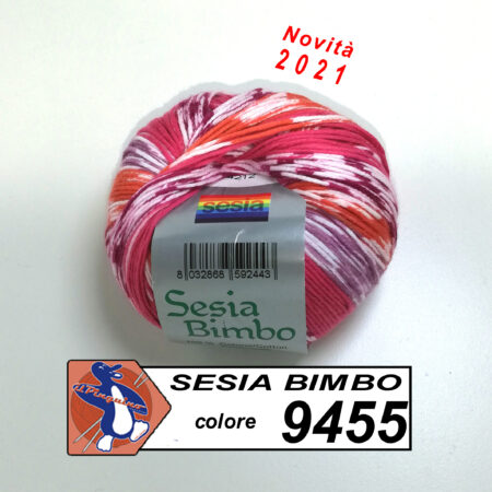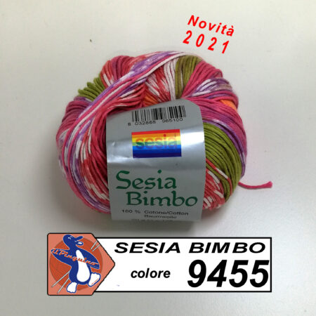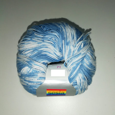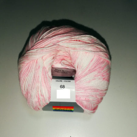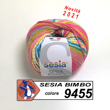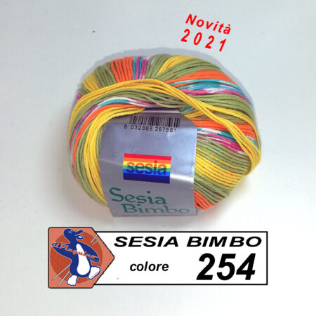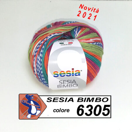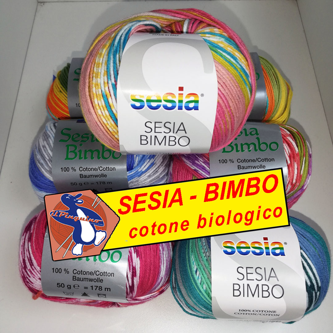 SESIA BIMBO (ditta SESIA) Filato a fantasia prodotto in Italia, biologico, anti allergico e irrestringibile, in fantasie di colori. La sua particolare colorazione crea automaticamente in fase di lavorazione una fantasia (a jacquard) di tantissimi colori infatti lavorando a maglia rasata lo jacquard si crea da solo.